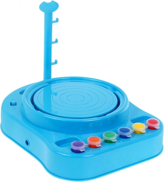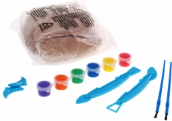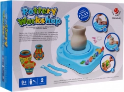 | - Töpferbasis mit Scheibe, - 2x Bildhauerwerkzeug, - Ständer, - Leine mit Halterungen, - 6 verschiedene Farben, - 2 x Pinsel, - 2 x Ton, insgesamt 800 g | |