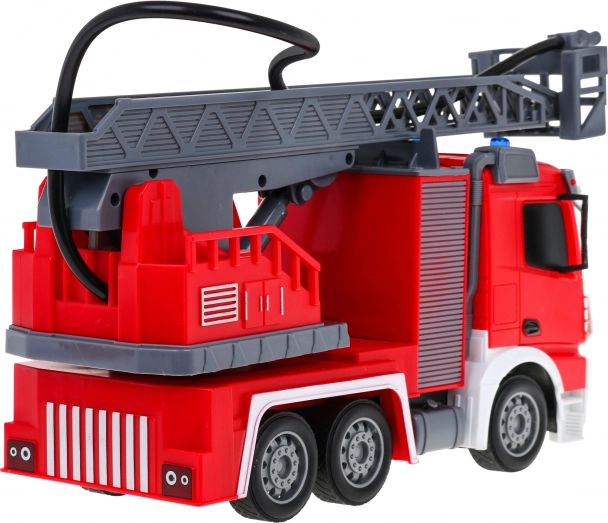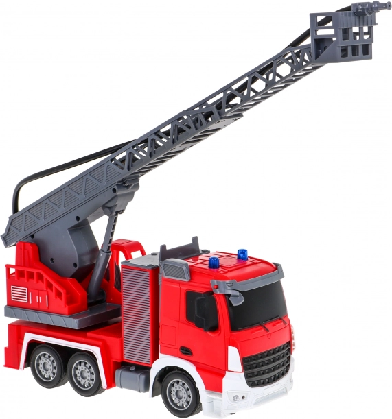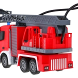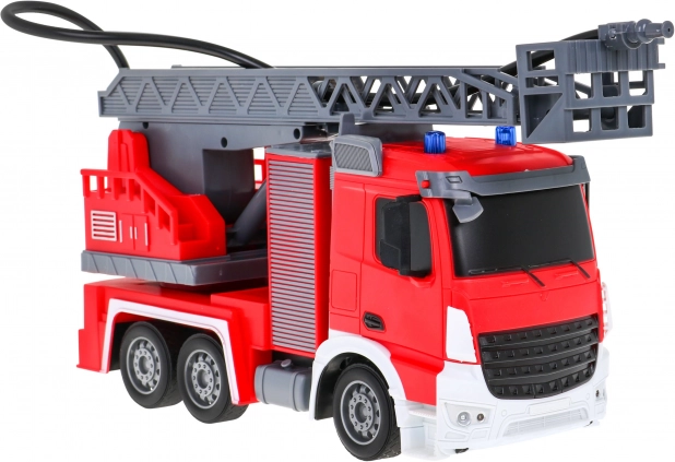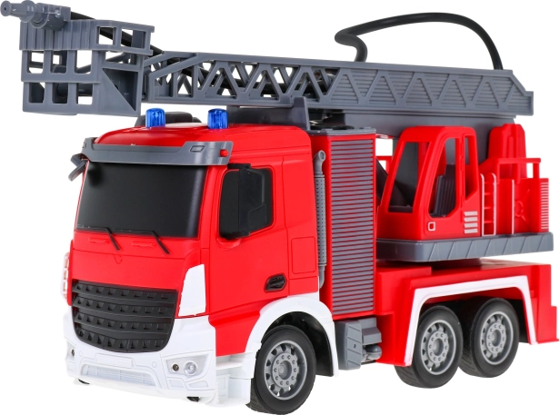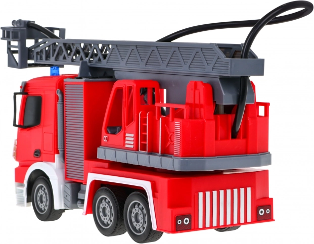 | | Großes interaktives Feuerwehrauto mit beweglicher und drehbarer Leiter, Wasserschlauch und vielen Funktionen, geeignet für Kinder ab drei Jahren. Das Fahrzeug wird mit einer 2,4-GHz-Fernsteuerung bedient. Es fährt vorwärts und rückwärts und lenkt nach rechts und links. Es hat Gummireifen und gummierte Spiegel. Das Spielzeug verfügt über eine Soundfunktion – Geräusche beim Anheben und Ausfahren der Feuerwehrleiter – sowie eine Lichtfunktion – Frontscheinwerfer und blinkende Lichter auf der Oberseite des Fahrzeugs beim Anheben und Absenken des Krans. Die Feuerwehrleiter kann ausgefahren, nach oben und unten bewegt und um 180 Grad gedreht werden. Das Fahrzeug ist mit einem Wasserschlauch ausgestattet, aus dem Wasser spritzt! Das Spielzeug wird von einem 500 mAh 3,7 V Akku (im Lieferumfang enthalten) betrieben, die Fernsteuerung von 2 x AA 1,5 V Batterien (nicht enthalten). Funktionen des Feuerwehrautos: - Maßstab 1:12, - Vorwärts- und Rückwärtsfahrt sowie Rechts- und Linkskurven, - Gummiräder, - gummierte Spiegel, - Hinterradantrieb, - einstellbare Lenkung, - Anheben, Absenken und Ausfahren der Feuerwehrleiter, - Drehung der Leiter um 180 Grad, - Schlauch mit Wasserbefüllung, - Frontscheinwerfer, - blinkende Lichter auf der Oberseite des Fahrzeugs beim Absenken und Anheben der Leiter, - Geräusche beim Anheben und Absenken der Leiter. |