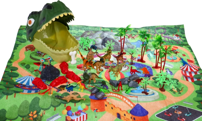 Dieses unterhaltsame und lehrreiche Set begeistert kleine Paläontologen. Der große Kunststoff-Dinosaurierkopf dient als Aufbewahrungsbox mit ausziehbarem Griff, sodass Kinder die ganze Welt überallhin mitnehmen können. Im Inneren finden Sie eine Filz-Spielunterlage mit Parkmotiv sowie eine bunte Sammlung Gummi-Dinosaurierfiguren, Bäume, Felsen und einen Vulkan für realistische Szenen.