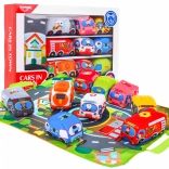 Bunte Stoffautos mit niedlichen Fahrern sind leicht, weich und ideal für kleine Händchen. Sie fördern ein spielerisches und sicheres Spielen ohne harte Kanten.