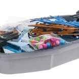 - Schiff mit Abschussvorrichtungen, - 10 x blaues Schiff, .- 10 x braunes Schiff, .- 30 x bunte Kugeln-Geschosse . |