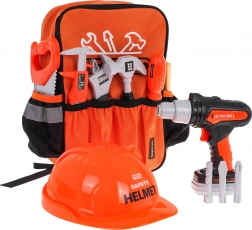 Dieses kreative Tüftler-Set im orangefarbenen Rucksack bietet Kindern ein realitätsnahes Erlebnis beim Arbeiten mit Werkzeug – sicher und unterhaltsam. Dank der Akku-Bohrmaschine mit 2× AA-Batterien (nicht enthalten) und austauschbaren Aufsätzen probieren kleine Baumeister Schrauben, Bohren und Montieren. Der Schutzhelm verstärkt die Rolle des kleinen Meisters und vermittelt grundlegende Sicherheitsprinzipien.