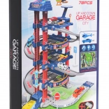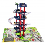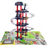 Das mehrstöckige Parkhaus bietet Parkplätze, eine Tankstelle, einen Lift für Autos und einen Heliport. Das Bedienfeld mit farbigen Tasten steuert den Aufzug und startet Effekte: Die rote Taste fährt den Aufzug nach unten, die gelbe hebt ihn nach oben. Die blaue Taste spielt Geräusche von Polizei, Feuerwehr, Krankenwagen, Motorstart und Schüssen ab, die grüne Taste aktiviert die Hupe. Auf dem Panel blinken blaue und rote Lichter, die die Spielatmosphäre verstärken.