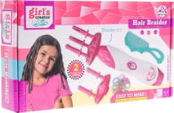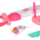 Zopfflecht-Set wurde für einfache und spaßige Haarstylings entwickelt. Dieses fröhliche Set beinhaltet eine Plastik-Flechtmaschine mit austauschbaren Aufsätzen, einen Kamm und 50 Haargummis. Einfach 2 bis 3 Haarsträhnen in die Öffnungen einlegen und durch Drücken eines Knopfes schöne Zöpfe erstellen!