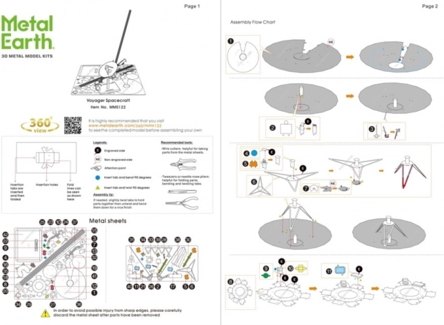 Lösen Sie die einzelnen Teile aus den Metallplatten; bei Bedarf verwenden Sie kleine Seitenschneider (nicht enthalten). Die Teile werden mittels Laschen- und Lochverbindungen zusammengefügt. Biegen Sie die Laschen mit kleinen, feinen Zangen (nicht enthalten) um und verbinden Sie nach und nach alle Verbindungen, bis ein sehr realistisches Meisterstück entsteht!