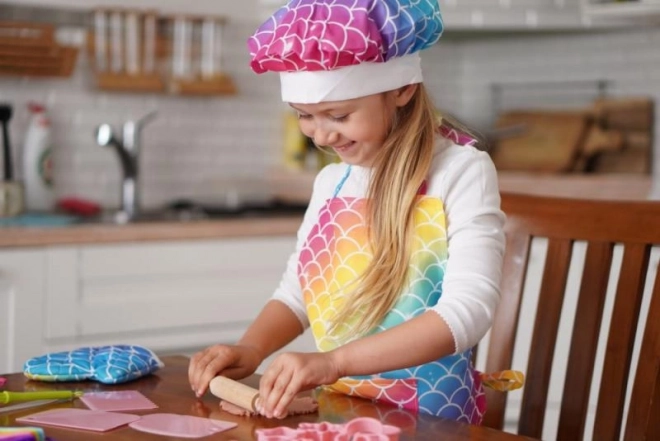 Fördern Sie die kindliche Kreativität und die Liebe zum Kochen mit dem originalen Set von Plejo. Regenbogenfarben und ein verspieltes Muster verwandeln jeden Versuch mit Keksen, Muffins oder selbstgemachtem Teig in ein fröhliches Abenteuer. Die Textil-Accessoires schützen die Kleidung, und das farbige Zubehör liegt gut in kleinen Kinderhänden.