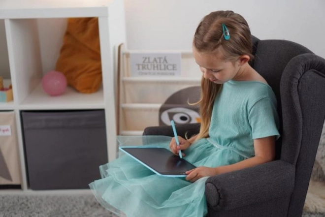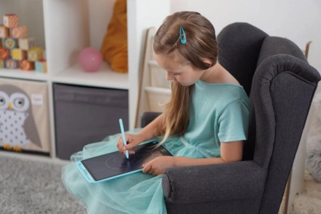 Leichtes und tragbares LCD-Zeichentablet 10,5" in Blau für Kinderkreationen und schnelle Notizen. Mit einem Druck alles löschen und neu beginnen. Der farbige Hintergrund sorgt für bunte Linien, der Stylus ist im Lieferumfang enthalten. Ideal für Zuhause, Schule und unterwegs.