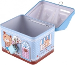 Fröhliche Tiermotive und Fensterchen des Häuschens machen die Spardose zu einer hübschen Deko fürs Kinderzimmer und fördern das regelmäßige Einwerfen von Münzen.