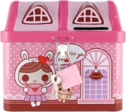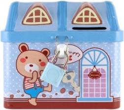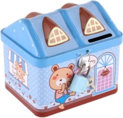 Diese Blech-Spardose in Hausform ist ideal für die ersten Schritte im richtigen Umgang mit Geld. Dank des Schlosses mit Schlüssel bleiben die Ersparnisse sicher, und der Einwurfschlitz oben erleichtert das regelmäßige Sparen. Bunte Illustrationen und ein verspieltes Design motivieren Kinder, täglich Kleingeld einzuwerfen.