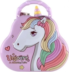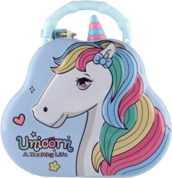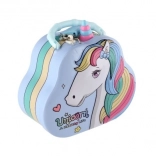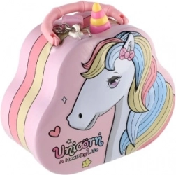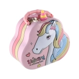 Suchen Sie ein niedliches und praktisches Geschenk für Kinder? Die Blechspardose – Handtasche mit Einhorn ist die ideale Wahl. Dank des abschließbaren Deckels können Kinder ihre ersten Ersparnisse sicher aufbewahren, während der obere Münzschlitz das tägliche Sparen erleichtert.