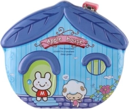 Niedliche Blech-Spardose in Hausform mit „Apple House“-Motiv hilft Kindern, den Umgang mit Geld zu lernen und zu zählen. Sie verfügt über ein sicheres Schloss mit Schlüssel, einen praktischen Schlitz für Münzen und eine robuste Ausführung aus Metall in mehreren fröhlichen Farben, die Kinder lieben werden.