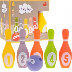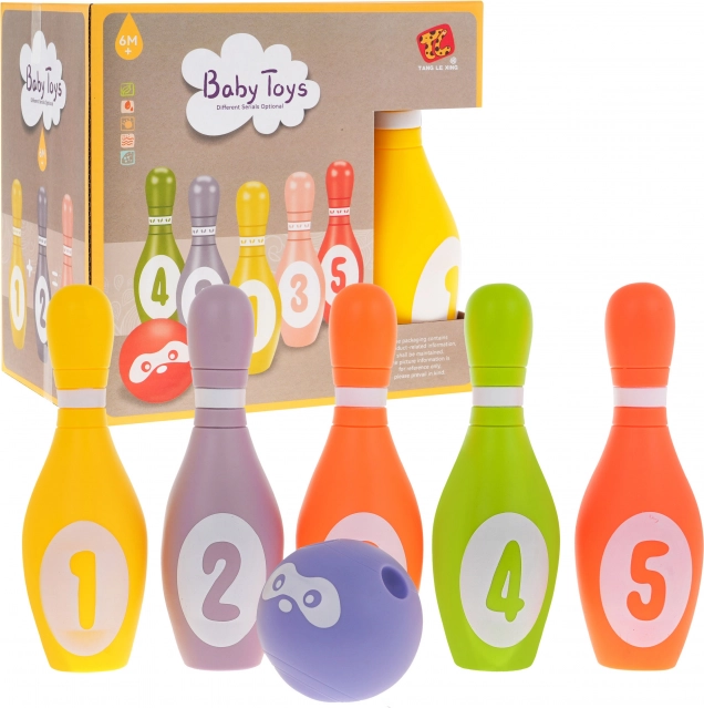 Das Schaumstoff-Kegelset mit Ball ist eine hervorragende Wahl für die ersten sportlichen Spiele von Kindern bereits ab 6 Monaten. Das weiche und leichte Material liegt angenehm in der Hand, ist rutschfest und enthält weder scharfe Kanten noch Kleinteile. Jedes Teil gibt beim Drücken ein lustiges Quietschen von sich, das zu weiterem Spielen motiviert.