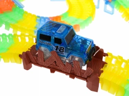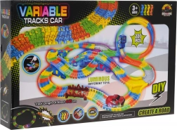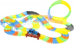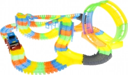 Die im Dunkeln leuchtende Strecke mit Looping und Auto im Set ist bereits für Kinder ab 3 Jahren geeignet. Die Schienen sind flexibel und können in beliebigen Kombinationen angeordnet, gedreht, angehoben und während der Fahrt des Autos umgebaut werden. Zudem sind die Schienen fluoreszierend und leuchten im Dunkeln. Das im Set enthaltene Fahrzeug verfügt über eine LED-Beleuchtung; die Fahrt im Dunkeln erzeugt einen tollen Effekt. Das Fahrzeug wird mit 2 AA-Batterien 1,5 V betrieben, Batterien sind nicht im Lieferumfang enthalten. Um das Auto zu starten, drücken Sie einfach die Taste auf dem Dach. Die Gesamtlänge der Strecke beträgt 446 cm. . |