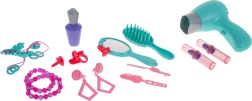 Enthalten ist ein sicherer Föhn für 1× AA-Batterie, der sanft bläst und realistische Geräusche macht – ideal für Rollenspiele im eigenen „Friseursalon“.