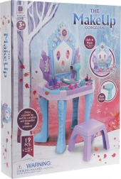 Zum Set gehören ein Hocker, Schmuck und Kosmetik-Accessoires – alles sicher und auf kleine Kinderhände abgestimmt. Die praktischen Fächer vorne und seitlich am Tisch bewahren alle Schätze ordentlich auf.