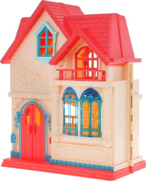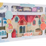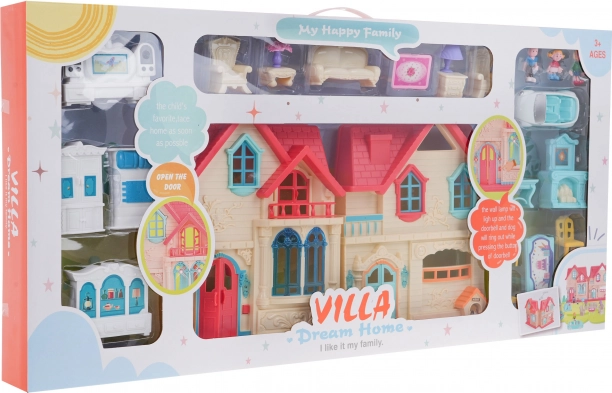 Diese farbenfrohe, aufklappbare Villa bietet Kindern ab 3 Jahren endlose Spielmöglichkeiten. Nach dem Öffnen erhalten Sie Zugang zu vier detailreich ausgestatteten Zimmern mit Möbeln und Accessoires. Die Klingel an der Eingangstür spielt beim Drücken das Läuten und Hundegebell ab und schaltet gleichzeitig die Lampen an der Tür ein; zusätzlich blinkt eine Stehlampe im Zimmer.