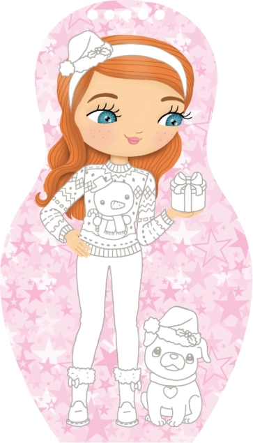 Wir kleiden Puppen zu Weihnachten an – Malbuch und Sticker