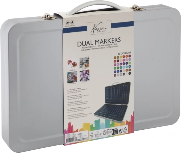 Dieses vielseitige Set doppelseitiger Marker ist eine hervorragende Wahl für Illustration, Skizzen und Lettering. Jeder Marker bietet zwei Seiten für unterschiedliche Strichstile, sodass Sie leicht zwischen detailreichen Linien und Flächen wechseln können. Der Metallkoffer schützt den Inhalt, hält Ordnung und erleichtert den Transport.