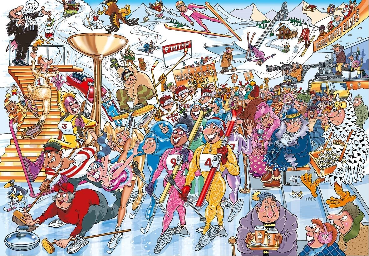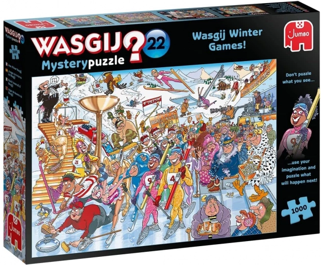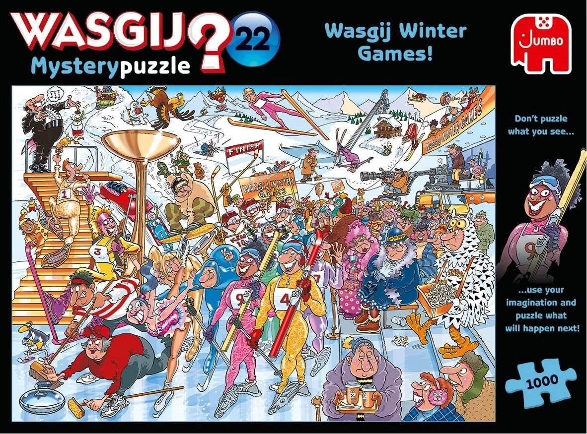 Vergessen Sie gewöhnliche Vorlagen – mit WASGIJ Mystery puzzeln Sie eine Szene, die an die Illustration auf der Schachtel anknüpft und wenige Augenblicke später spielt. Die winterliche Eröffnungszeremonie ist in vollem Gange, Sportler marschieren ein und zeigen ihre Fähigkeiten … aber was passiert gleich danach? Nutzen Sie Ihre Fantasie und die Hinweise auf der Verpackung, um die unerwartete Auflösung zu entdecken.