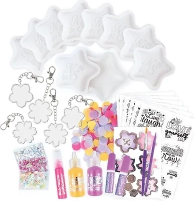 Erstellen Sie fliegende Sterne mit Inspiration und einem Schlüsselanhänger in Blumenform. Für Kinder ab 7 Jahren. Kreatives Set zur Verbreitung von Stimmung.