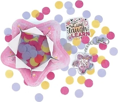 Erstellen Sie Ihre eigenen fliegenden Sterne mit inspirierenden Botschaften und einem schönen Schlüsselanhänger in Blumenform. Verschenken Sie sie an Freunde und Familie und helfen Sie, positive Stimmung und Freude zu verbreiten!