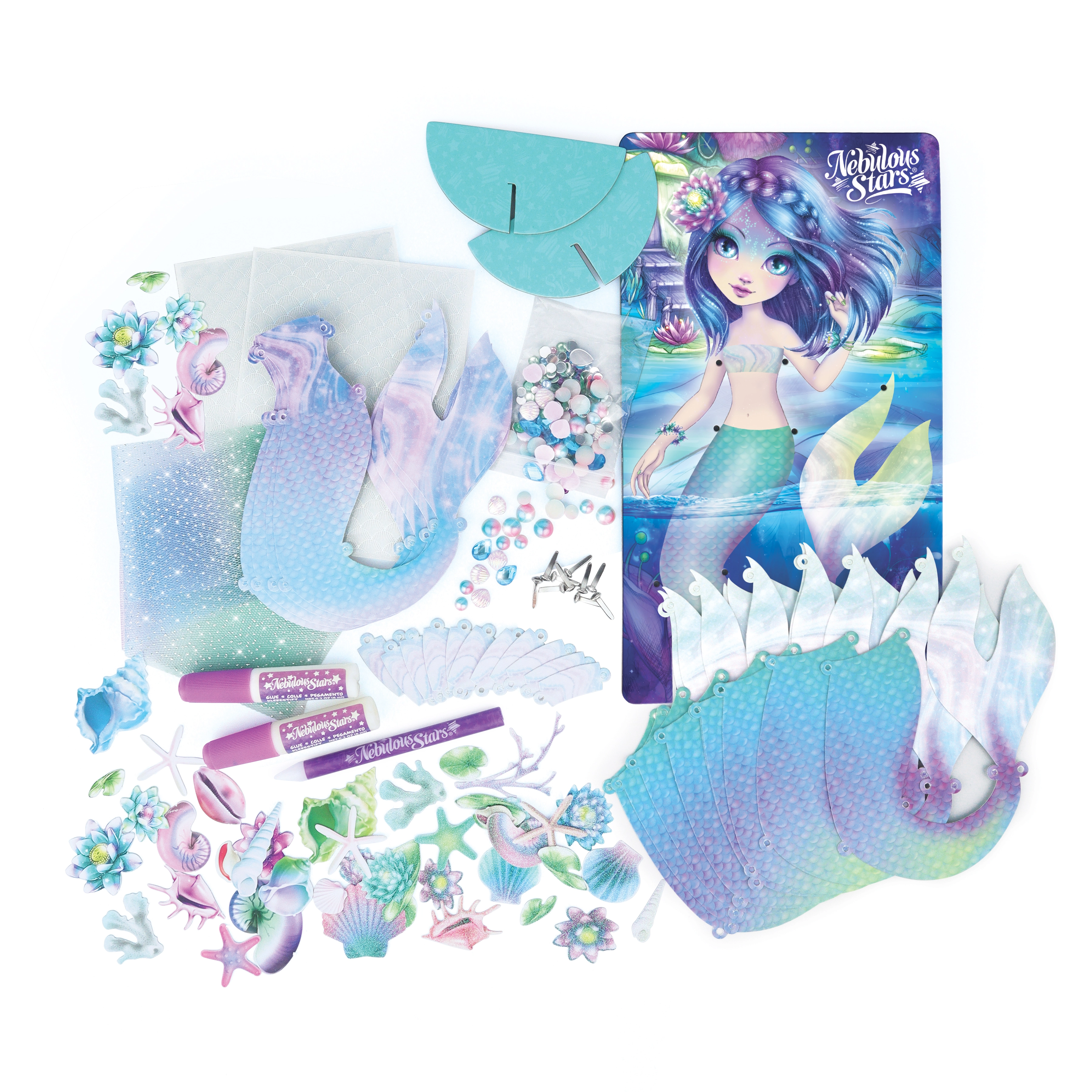 Verwandle Nenuphia in eine strahlende Meeresprinzessin und präsentiere sie auf dem stilvollen Ständer. Das Set fördert Feinmotorik, Kreativität und Geduld – ideal für ruhige, kreative Momente zuhause und als Geschenk.