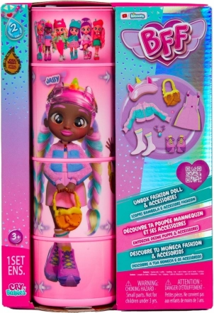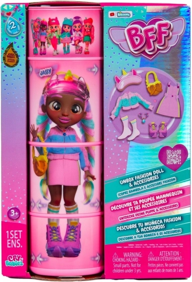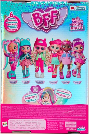Es gibt 6 weitere Cry Babies Magic Tears, die groß geworden sind und jetzt Teenager sind! Ella, Lala, Daisy, Bruny, Hannah und Jassy! Sie sind Teenager und erleben gemeinsam die unterschiedlichsten Abenteuer. Alle tragen modische Outfits, haben lange Nylonhaare, die sich ideal stylen lassen, Glasaugen und bewegliche Körperteile! Packe den Kleiderschrank deiner BFF aus und entdecke mehr als 9 Überraschungen: