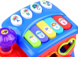 Das Set enthält Bausteine und nummerierte Klötze, die das Kind den entsprechenden Öffnungen an der Lok zuordnen kann. Jeder Block enthält Frucht- und Zahlen- oder Buchstabensymbole, die zum Lernen beitragen. Dank dieser interaktiven Elemente wird die Lokomotive zu einem großartigen Werkzeug zur Entwicklung motorischer Fähigkeiten und logischen Denkens.