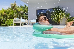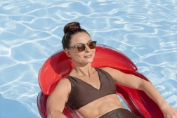 Das integrierte aufblasbare Kissen stützt Nacken und Kopf für lange, ungestörte Entspannung auf der Wasseroberfläche.