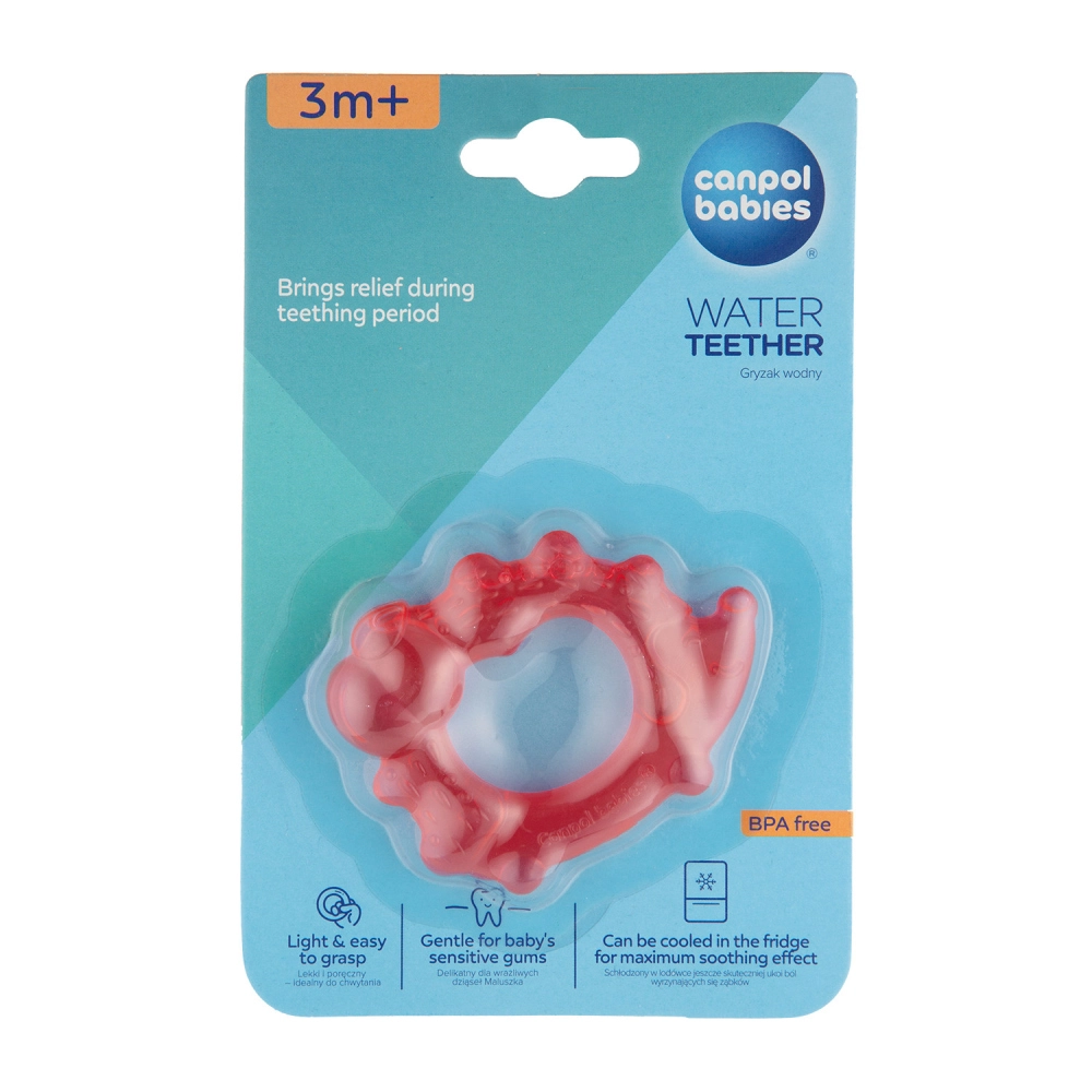Die ergonomische Form mit Öffnung in der Mitte ist ideal für kleine Hände – der Beißring ist leicht und einfach zu greifen. Verschiedene Farben und Oberflächenstrukturen stimulieren die Entwicklung der visuell-motorischen Koordination. Das Produkt ist sicher, BPA-frei und mit mikrobiologisch getestetem destilliertem Wasser gefüllt.