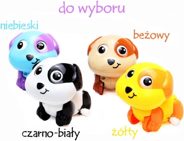 Dieses fröhliche Kunststoff-Hündchen ist ein großartiger Begleiter für die ersten Entdeckungen der Welt. Nach dem Aufziehen fährt es über den Boden, wedelt fröhlich mit dem Schwanz und blinzelt mit den Augen – all das motiviert Kinder zum Krabbeln und aktiven Spielen.