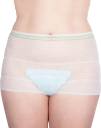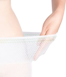 Leichtes und weiches Netzgewebe sorgt für freie Luftzirkulation, reizt die Haut nicht und unterstützt den Komfort im Wochenbett.