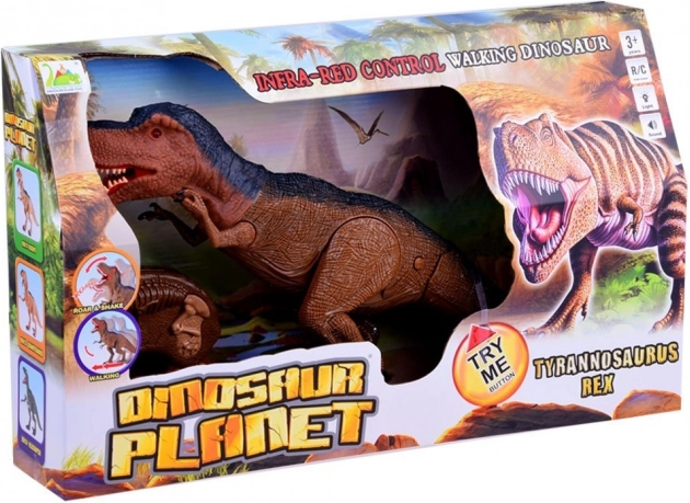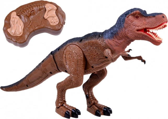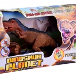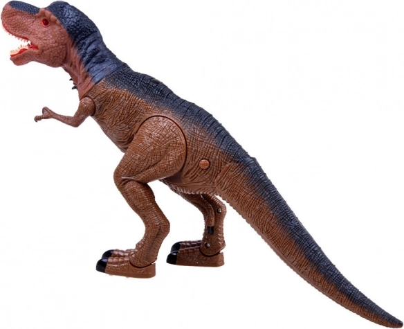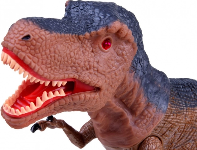 Auf Knopfdruck schreitet der T‑Rex gleichmäßig voran, begleitet von donnernden Schritten, die die Atmosphäre einer prähistorischen Jagd verstärken.
