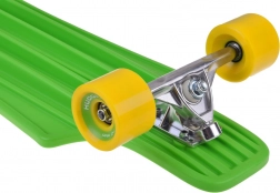 Das Deck aus hochstrapazierfähigem Polypropylen ist leicht und stabil, die rutschhemmende Textur und Griptapes geben Sicherheit während der Fahrt. Aluminium-Trucks 7", große PU-Rollen 70 × 51 mm und ABEC-7-Lager sorgen für gleichmäßiges Abrollen, gute Dämpfung von Unebenheiten und präzises Kurvenfahren.