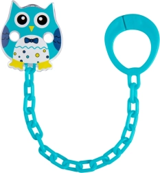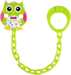 Die Kette verfügt über einen praktischen Clip, der eine feste und stabile Befestigung an der Kleidung des Kindes ermöglicht und den Schnuller vor Verschmutzung oder Verlust schützt. Gebrauchsanweisung: Sauber halten. Vor der ersten Verwendung und anschließend gelegentlich die Kette in warmem Wasser waschen und abspülen. Nicht auskochen. An einem sauberen Ort aufbewahren. Die Kette nur an der Kleidung des Kindes befestigen. Achtung! Wichtig für die Sicherheit und Gesundheit Ihres Kindes! Vor jedem Gebrauch die Qualität des Produkts überprüfen. Bei ersten Anzeichen von Abnutzung oder Beschädigung das Produkt nicht weiter verwenden – durch ein neues ersetzen. Die Kette niemals verlängern. Die Kette niemals an Bänder, Spitzen, Schnüre oder lose Teile der Kleidung befestigen. Es besteht Strangulationsgefahr. Die Kette nicht verwenden, wenn sich das Kind im Bettchen/der Wiege befindet oder wenn es nicht unter der Aufsicht eines Erwachsenen steht. Hinweis! Das Produkt ist kein Spielzeug. Außer Reichweite von Kindern aufbewahren. Die Produktinformationen für eine spätere Verwendung aufbewahren. Die Chargennummer ist auf der Verpackung angegeben. Die Schnullerkette entspricht den Anforderungen: Richtlinie 2001/95/EG des Europäischen Parlaments und des Rates über die allgemeine Produktsicherheit. EN 12586 Produkte für die Kinderpflege – Schnullerhalter – Sicherheitsanforderungen und Prüfverfahren.