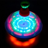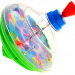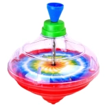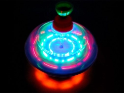 Dieser spielende und leuchtende Kreisel verbindet den Zauber eines klassischen Spielzeugs mit modernen Effekten. Durch Drücken des oberen Kolbens gerät der Kreisel in Schwung, in der transparenten Kuppel leuchten blinkende Lichter auf und eine fröhliche Melodie erklingt. Kinder fasziniert der Wirbel aus Farben und Bewegung, Eltern freuen sich über die einfache Handhabung und die Robustheit.
