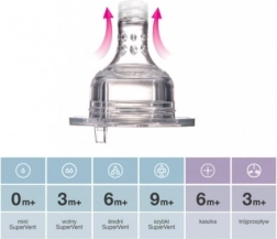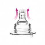 Der dynamische Sauger von LOVI ist darauf ausgelegt, die korrekte Entwicklung der Mundhöhle der Kinder zu unterstützen. Er bietet sechs verschiedene Durchflussgrößen für unterschiedliche Bedürfnisse. Der Sauger ermöglicht aktives Saugen, das die korrekte Entwicklung der Mundhöhle stimuliert und bei der Sprachentwicklung hilft, sowie dank des Antikoliksystems das Kolikproblem löst.