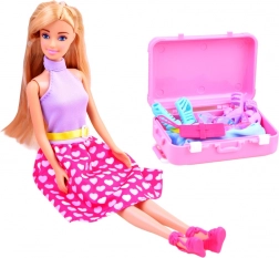 Set: Puppe mit tragbarem Kleiderschrank und Accessoires
