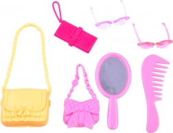 Kleid mit „Girl Power“-Motiv, verschiedene Kleidchen, Schuhe, Handtaschen, Brille, Kamm, Spiegel, weitere Accessoires