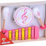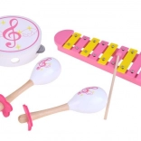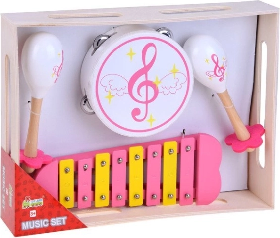Dieses mehrteilige Musikset ist die perfekte Wahl für kleine Musiker und die ganze Freundesgruppe. Die Instrumente sind aus hochwertigem Holz gefertigt, haben einen angenehmen Klang und ein ansprechendes Design in Rosa- und Gelbtönen. Kinder entwickeln spielerisch Rhythmus, Koordination und musikalisches Feingefühl.