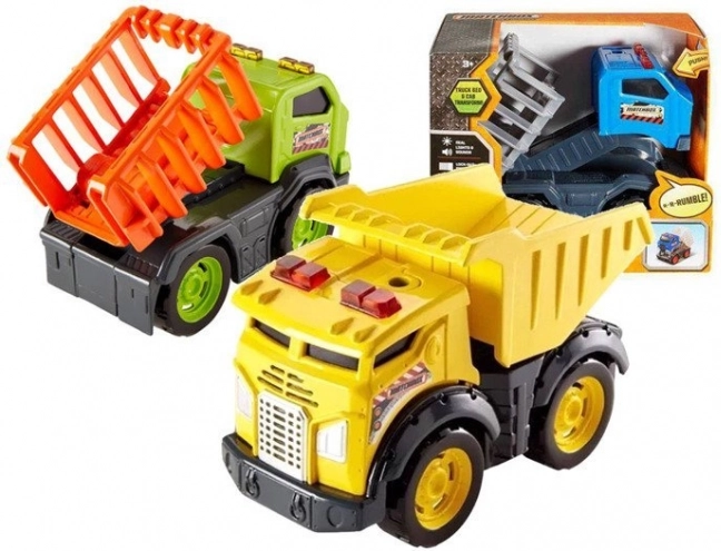 Erleben Sie unvergessliches Spielen mit dem Matchbox Klappbaren LKW, der interaktive Elemente für Kinder bietet. Die Kabine und der Anhänger heben sich an, ergänzt durch authentische Geräusche und blinkende Lichter.
