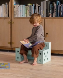 Hergestellt in Europa aus robustem EPP-Schaum (100 % recycelbar, teilweise aus Ozean-Rezyklat). Das Material ist leise, bodenschonend, spülmaschinengeeignet und abwaschbar, ideal für den Innenbereich und spielerische Therapie der sensorischen Integration. Perfekt für Kinder von Geburt bis 6 Jahre – und gern auch für den Rest der Familie.