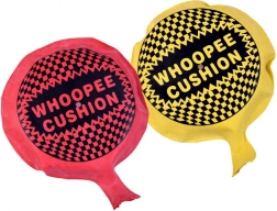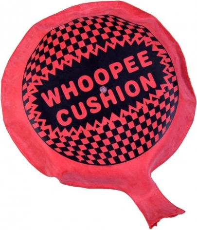 Das Kissen ist so gestaltet, dass es beim Hinsetzen ein Geräusch macht, das das Zwerchfell aller Anwesenden kitzelt.