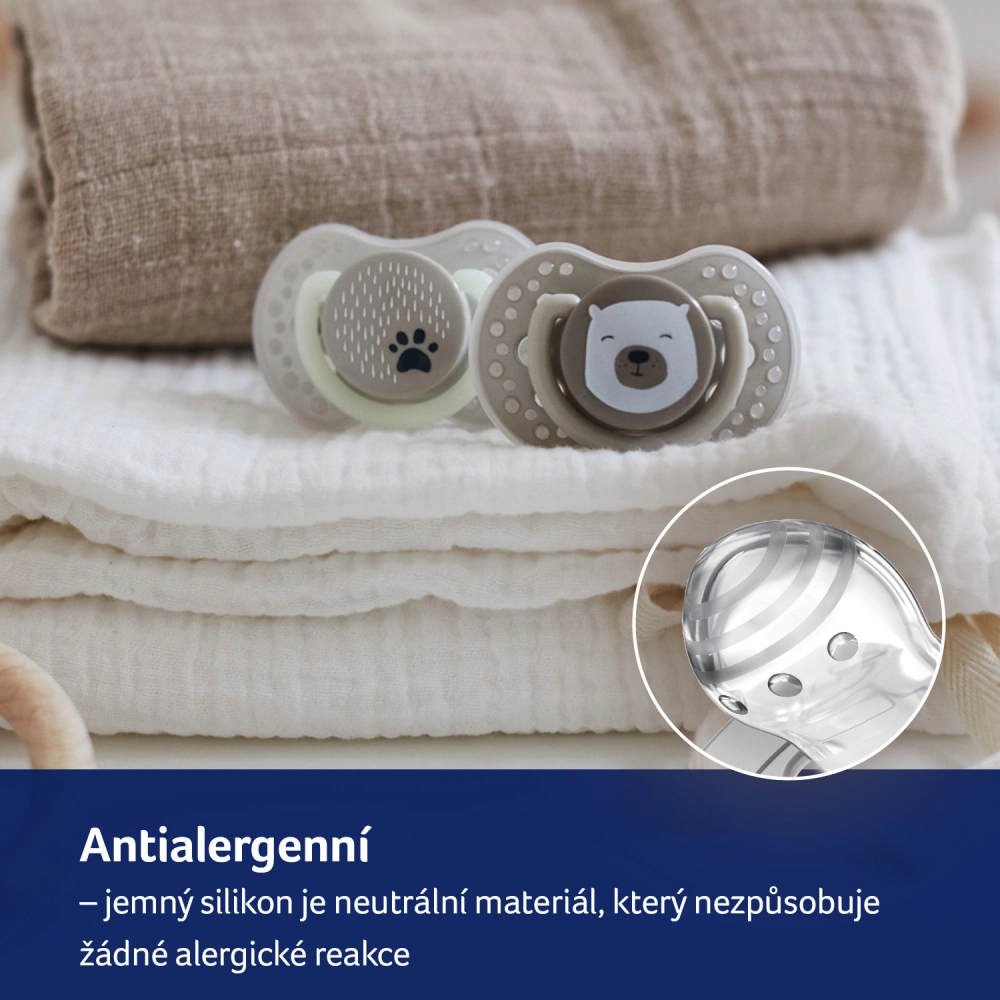 Der dynamische LOVI-Schnuller wurde in Zusammenarbeit mit Neurologopäden entwickelt, um die natürliche und gesunde Entwicklung des Gaumens, der Zähne und des Zahnfleisches des Kindes zu unterstützen. Der symmetrische, dynamische Silikonschnuller von LOVI wurde klinisch getestet. Alle LOVI-Schnuller sind BPA-frei. Alle LOVI-Schnuller bestehen aus Silikon, das geschmacks- und geruchsneutral ist. Silikonschnuller sind langlebiger und lassen sich leichter hygienisch sauber halten. Der einzigartige symmetrische, dynamische Sauger entlüftet sehr gut und deformiert den Gaumen des Kindes nicht: - verhindert den Reflex, auf den Schnuller zu beißen - ermöglicht ein natürliches Schlucken des Speichels - unterstützt die gesunde Sprachentwicklung und die Ausbildung des Bisses - deformiert den Gaumen des Kindes nicht - entlüftet sehr gut. Der dynamische Sauger besteht aus inhomogenen Silikonschichten und verlängert bzw. verkürzt sich entsprechend dem Saugrhythmus des Kindes. Die symmetrische Form erinnert an die Brustwarze der Mutter. Die Form des Saugers ermöglicht zudem das Einführen des Schnullers in den Mund des Kindes in beliebiger Ausrichtung (keine Ober- und Unterseite). Die geformte, verkleinerte Aussparung des Schildes ermöglicht dem Kind das freie Atmen durch die Nase. Er ist aus sicherem, BPA-freiem Material gefertigt. Der einzigartige Schildrand besteht aus medizinischem Material, ist angenehm zu berühren und verhindert Druckstellen durch den Schnuller. Die Schildgröße ist im Vergleich zu den Standard-LOVI-Schnullern verkleinert. Durch den verkleinerten Schild ist der Schnuller sehr leicht – ideal für Neugeborene. Öffnungen im Schild ermöglichen Luftzirkulation, verhindern Speichelansammlungen hinter dem Schild und beugen so Hautreizungen der empfindlichen Babyhaut vor. Der Ring am Schnuller sitzt fest, erleichtert das Halten und Reichen des Schnullers. Daran können Sie eine Kette oder Schnur befestigen. Ein Schnuller in der Kapsel verfügt über einen einzigartigen, im Dunkeln leuchtenden Sicherheitsring. Die Schnuller verfügen über einen einzigartigen, im Dunkeln leuchtenden Sicherheitsring. Aus hygienischen Gründen ist der Schnuller mit einer Kunststoffkappe versehen. Der LOVI-Schnuller wurde von Endverbrauchern ausgezeichnet. Bedienungsanleitung: Vor dem ersten Gebrauch den Schnuller aus hygienischen Gründen etwa 5 Minuten in kochendem Wasser sterilisieren. Nach dem Abkühlen Restwasser aus dem Schnuller ausdrücken. Vor jedem Gebrauch den Schnuller in warmem Wasser reinigen. Keine chemischen Desinfektionsmittel verwenden! Hohe Konzentrationen dieser Mittel können die Kunststoffteile des Schnullers beschädigen. Tauchen Sie den Schnuller niemals in süße Substanzen oder Medikamente – Sie setzen das Kind dem Risiko von Zahnschmelzschäden aus. Verwenden Sie den Schnuller maximal 1–2 Monate und ersetzen Sie ihn dann aus hygienischen und sicherheitstechnischen Gründen durch einen neuen. Falls der Schnuller dem Kind in den Mund rutscht, KEINE PANIK – der Schnuller ist so konstruiert, dass das Kind ihn nicht schlucken kann, und Sie können ihn in solchen Fällen sicher entfernen. Entfernen Sie den Schnuller so vorsichtig wie möglich. Bewahren Sie den Schnuller in einem sauberen, trockenen und geschlossenen Etui auf. Wir empfehlen, den Schnuller nicht bei Kindern über 3 Jahren zu verwenden. Warnung! Wichtig für die Gesundheit und Sicherheit Ihres Kindes! Prüfen Sie den Schnuller vor jeder Gabe an das Kind. Achten Sie besonders, sobald die ersten Zähnchen erscheinen. Testen Sie die Qualität des Saugers durch gründliches Ziehen in alle Richtungen. Bei den ersten Anzeichen von Beschädigungen den Schnuller sofort entsorgen und nicht weiter verwenden. Verwenden Sie nur solche Schnullerhalter, die der Norm EN 12586 entsprechen. Befestigen Sie den Schnuller niemals an verschiedenen Schnüren, Schnürsenkeln oder Bändern der Kleidung. Erstickungsgefahr. Lassen Sie den Schnuller nicht direkter Sonneneinstrahlung, in der Nähe von Wärmequellen oder länger als empfohlen in Desinfektionsmitteln liegen – dies kann zur Schwächung des Saugers führen. Bewahren Sie die abgenommene Kappe außerhalb der Reichweite von Kindern auf – Erstickungsgefahr. Der Silikonschnuller entspricht folgenden Anforderungen: Richtlinie 2001/95/EG des Europäischen Parlaments und des Rates über die allgemeine Produktsicherheit, EN 1400-1 Produkte für die Kinderpflege – Schnuller für Säuglinge und Kleinkinder – Teil 1: Allgemeine Sicherheitsanforderungen und Produktinformationen, EN 1400-2 Produkte für die Kinderpflege – Schnuller für Säuglinge und Kleinkinder – Teil 2: Mechanische Anforderungen und Prüfungen, EN 1400-3 Produkte für die Kinderpflege – Schnuller für Säuglinge und Kleinkinder – Teil 3: Chemische Anforderungen und Prüfungen.