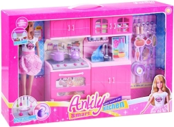 Mit diesem schönen Set erschaffen Kinder spielend ihre eigene Küchenwelt. Die Puppe ANLILY in pastellfarbenem Kleid mit Schürze und die detailreich gestaltete rosa Küche mit Ofen, Spüle, Schränken und Herd bieten stundenlangen Spielspaß und realistisches Nachspielen des Kochens.