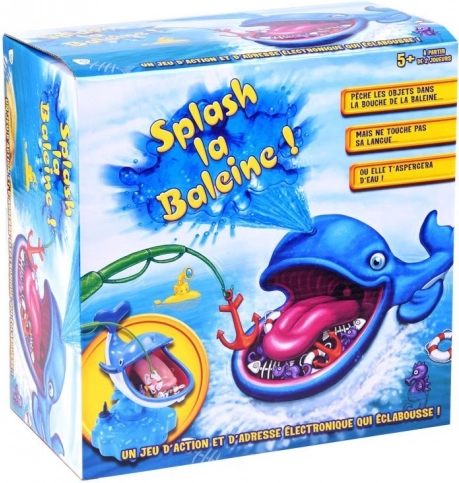 Das Wasserspiel Wal ist eine großartige interaktive Unterhaltung für die ganze Familie. Kinder trainieren Feinmotorik, Geduld und Hand-Auge-Koordination, während sie um das Angeln von Ankern, Rettungsringen oder Fischskeletten direkt aus dem Maul des lächelnden Wals wetteifern. Aber Vorsicht – eine Berührung der Zunge löst eine Wasser-Dusche aus!
