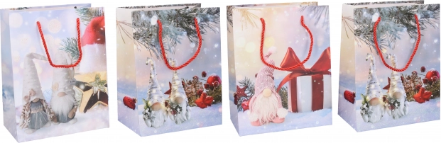 Machen Sie sich das Verpacken leichter mit dieser eleganten Weihnachtstasche. Das Maß 26 × 32 × 10 cm ist ideal für mittelgroße Geschenke und saisonale Überraschungen. Dank 4 verschiedener Motive lässt sich die Optik der Tasche leicht mit dem Inhalt und dem Stil der beschenkten Person abstimmen.