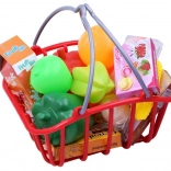 Praktischer roter Korb für das Tragen von Kleinigkeiten, der Kindern beibringt, Einkäufe zu organisieren und zu transportieren.
