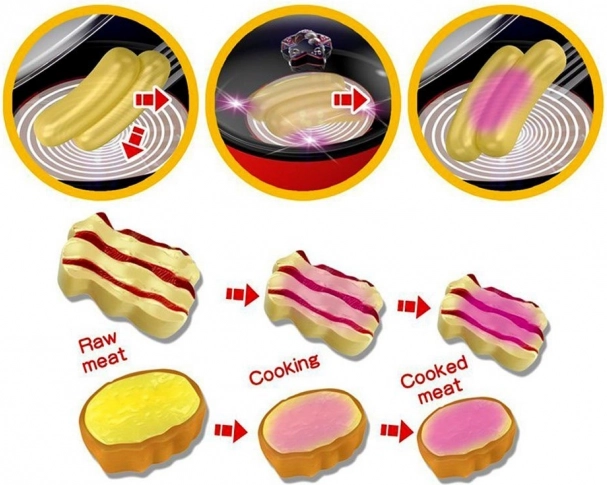 Die Pfanne erzeugt authentische Bratgeräusche und ändert die Farben, was das Erlebnis einer echten Küche näherbringt.