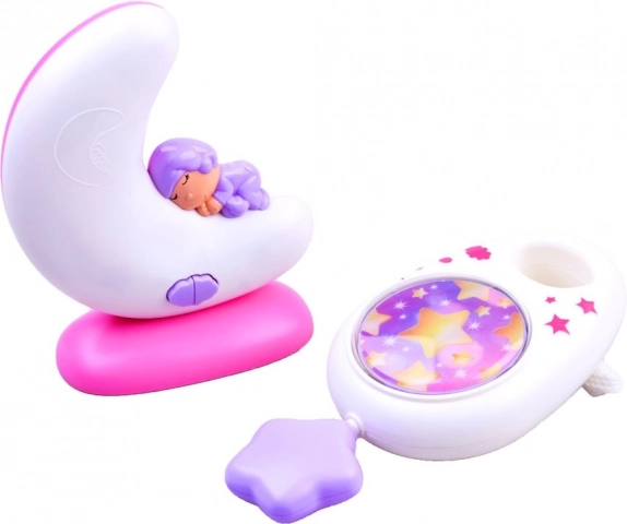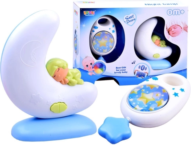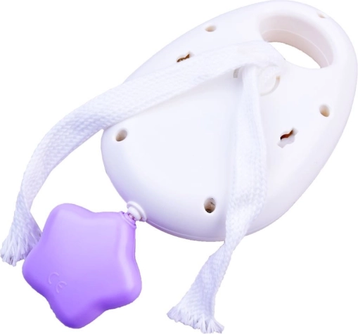 Zum Set gehört auch eine mobile Spieldose, die sich leicht am Kinderwagen, am Bettchen oder am Autositz befestigen lässt. Ein Ziehen an der Schnur lässt die Spieldose eine beruhigende Melodie spielen, während rotierende Sternchen Ihr Kind fesseln und beruhigen.
